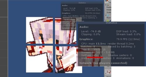 色やテクスチャを変えるとマテリアルが増える UnityはGetComponent<Renderer>().material.color = 色;とかでマテリアルの色を変更する事が出来ますが、これを行うとマテリアルが追加で一つ作られます。 異なるマテリアルは一括で描画出来ないので、内容物が同じであっ</renderer>…